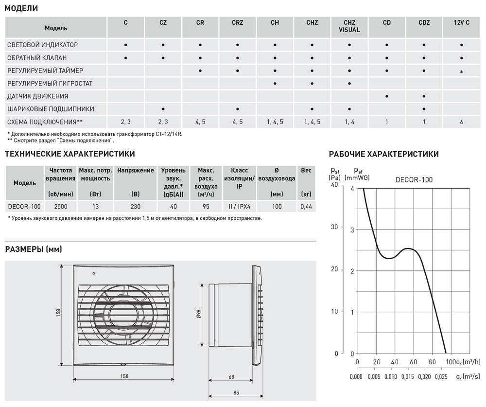 Вытяжной вентилятор Decor оснащен обратным клапаном, что препятствует обратному проникновению воздуха из вентиляции в помещение.